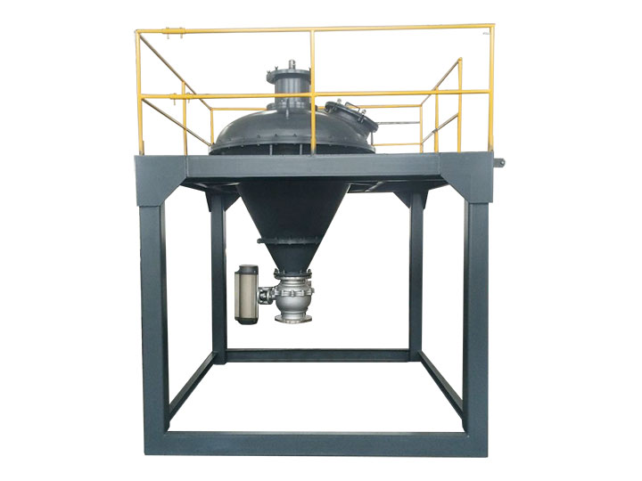 VC高效混合機(jī)混合過(guò)程溫和,裝填量大,裝填系數(shù)為0.7-0.9,特殊螺帶結(jié)構(gòu),使混合均勻,出料積料少。